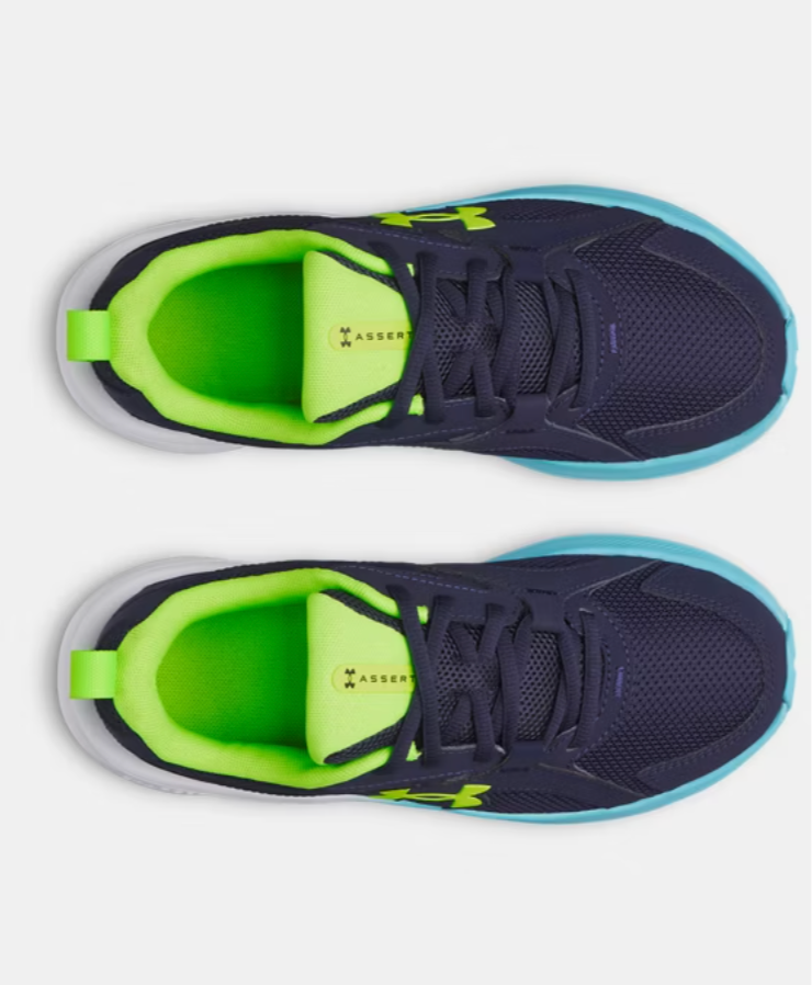 Under Armour Midnight Navy/Blue Blur/Hyper Green Charged+ Assert 11 Youth Sneaker