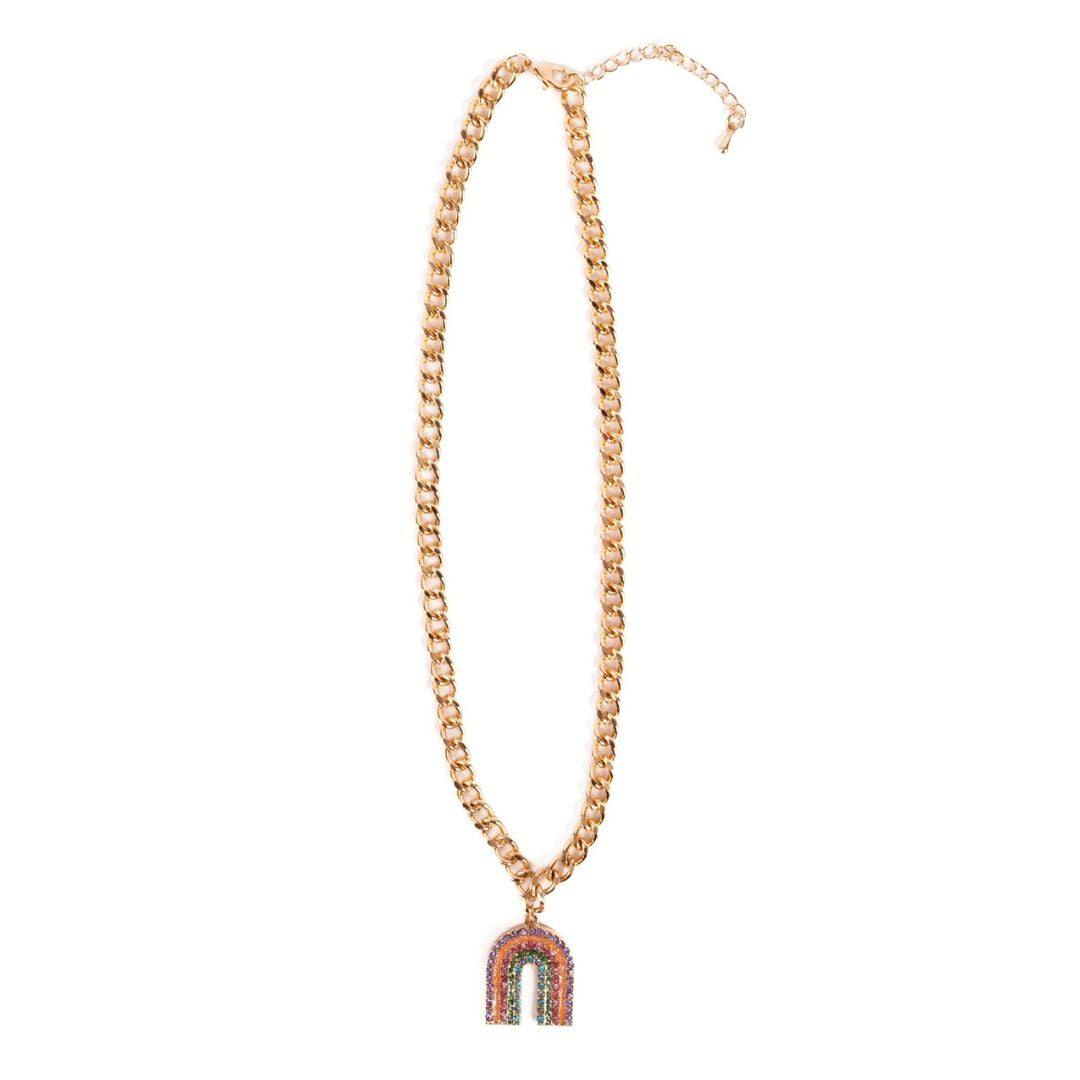 Rainbows, rhinestones, and a whole lot of magic! Our Somewhere Over the Rhinestone Necklace is the dreamiest accessory for little ones who believe in fairytales and love a touch of sparkle. With a twinkling rainbow pendant and a golden chain, it's made for everything from princess playdates to everyday shimmer.