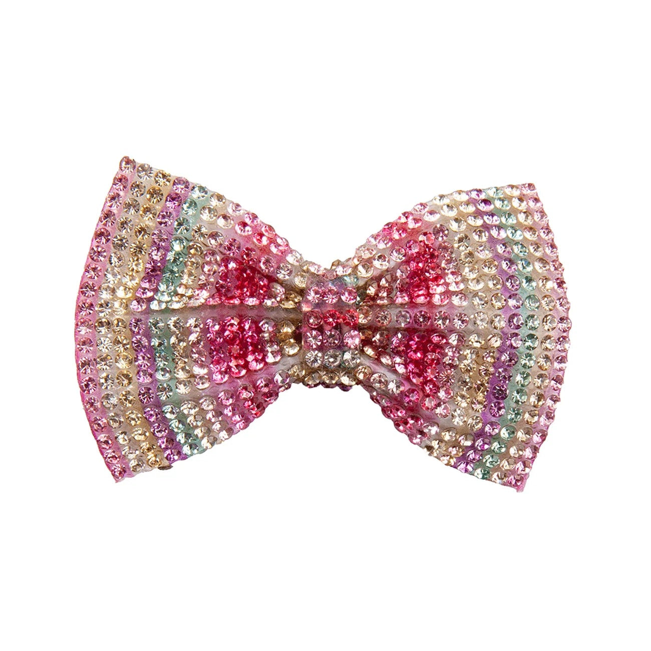 Our Boutique Gem Bow Hairclip is made from an alligator clip to sit securely in your child's hair. This rainbow bow clip is covered in rhinestones to add plenty of sparkle to any outfit!